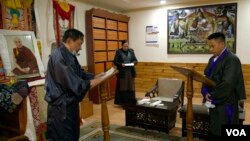 ༄༅།། ཕྱི་ཟླ་༡་པོའི་ཚེས་༢༥་ཉིན་བཙན་བྱོལ་བོད་མིའི་ཆེས་མཐོའི་ཁྲིམས་ཞིབ་ཁང་གི་སྲོང་བཙན་ཚོམས་ཆེན་དུ་པདྨ་བཟང་པོས་ཁྲིམས་ཞིབ་པ་ཆེ་བའི་ལས་ཚབ་ཀརྨ་དགྲ་འདུལ་གྱི་དྲུང་དུ་ལ་དྭགས་བོད་མིའི་ས་གནས་ཁྲིམས་ཞིབ་པའི་ལས་ཁུར་དམ་བཅའ་ཕུལ། དམ་འབུལ་གྱི་མཛད་སྒོ་གྲུབ་པའི་རྗེས་སུ་པདྨ་བཟང་པོས་ཆེས་མཐོའི་ཁྲིམས་ཞིབ་ཁང་གིས་ལ་དྭགས་ས་གནས་ཀྱི་ཁྲིམས་ཞིབ་ཁང་ལ་ཁྲིམས་ལུགས་ཀྱི་སློབ་སྦྱོང་ཐོན་པའི་ཁྲིམས་ཞིབ་པ་ཞིག་གསར་བསྐོ་མ་བྱུང་བར་དུ་ང་འཕྲད་སེལ་ལ་དྭགས་ས་གནས་ཁྲིམས་ཞིབ་པར་བསྐོ་བཞག་བྱས་པ་བཞིན་མ་འོངས་པར་ས་གནས་ཁྲིམས་ཞིབ་པའི་ལས་དོན་མཐའ་དག་དམ་འབུལ་གྱི་ཚིག་དོན་དང་བཅའ་ཁྲིམས་ཀྱི་དགོངས་དོན་ལྟར་ས་གནས་ཁྲིམས་ཞིབ་ཁང་གི་ཁྲིམས་དོན་དང་འཛིན་སྐྱོང་གི་ལས་དོན་རྣམས་དྲང་བདེན་གྱིས་བསྒྲུབ་རྒྱུ་ཡིན་ཞེས་དམ་བཅའ་བཞག
