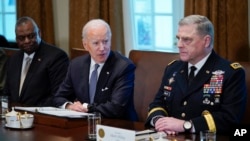 གཅིག་བྱས་ན་ཨ་རིའི་དམག་མི་ཁག་ཅིག་ཡུཀ་རེན་ལ་བཏང་ནས་སྦྱོང་བརྡར་སྤྲོད་དགོས་མིན་ཐད་དམའ་རིམ་གྱི་འབྲེལ་ཡོད་ལས་སྣེ་ཚོས་གྲོས་སྡུར་བྱེད་བཞིན་ཡོད་ཅེས་རྒྱལ་སྲུང་དྲུང་ཆེ་ཨོ་སི་ཊོན་གྱི་ལྷན་དུ་ཚོགས་ཆེན་དེར་གཏམ་བཤད་གནང་འདུག ད་ལོ་ཨུ་རུ་སུའི་བཙན་འཛུལ་བྱུང་སྟེ་དམག་འཁྲུག་ལངས་པའི་རྗེས་སུ་ཡུཀ་རེན་གྱི་ས་ཐོག་ཏུ་ཡོད་པའི་ཨ་རིའི་དམག་དཔུང་ཕྱིར་འཐེན་བྱས་པ་དང་ཡུཀ་རེན་ལ་བསྐྱར་དུ་ཨ་རིའི་དམག་དཔུང་གཏོང་རྒྱུའི་འཆར་གཞི་མེད་མོད། འོན་ཀྱང་ཨ་རིའི་དམག་དཔུང་སྤྱི་ཁྱབ་བཀོད་འདོམས་པ་མར་ཁེ་མེ་ལིས་གཏམ་བཤད་དེས་ཨ་རིའི་གཞུང་ཚབ་ཁང་གི་སྲུང་སྐྱོབ་དང་འཐབ་འཁྲུག་མ་ཡིན་པའི་ལས་དོན་ཆེད་དུ་དམག་དཔུང་ཁག་ཅིག་སླར་ཡང་ཡུཀ་རེན་ལ་གཏོང་སྲིད་པའི་བརྡ་ཞིག་བཏང་འདུག